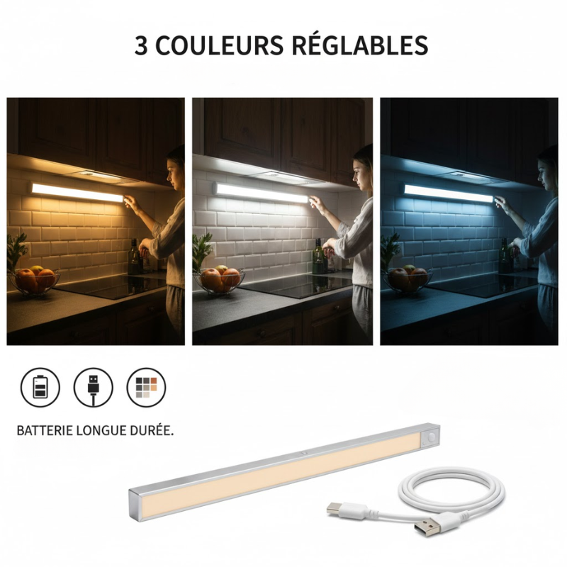 La réglette détecte vos mouvements et s’allume toute seule, sans interrupteur.