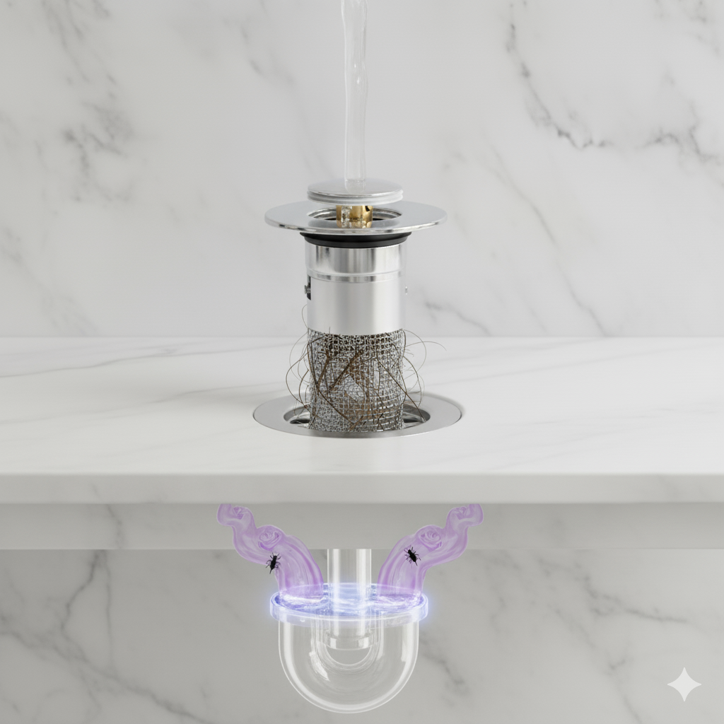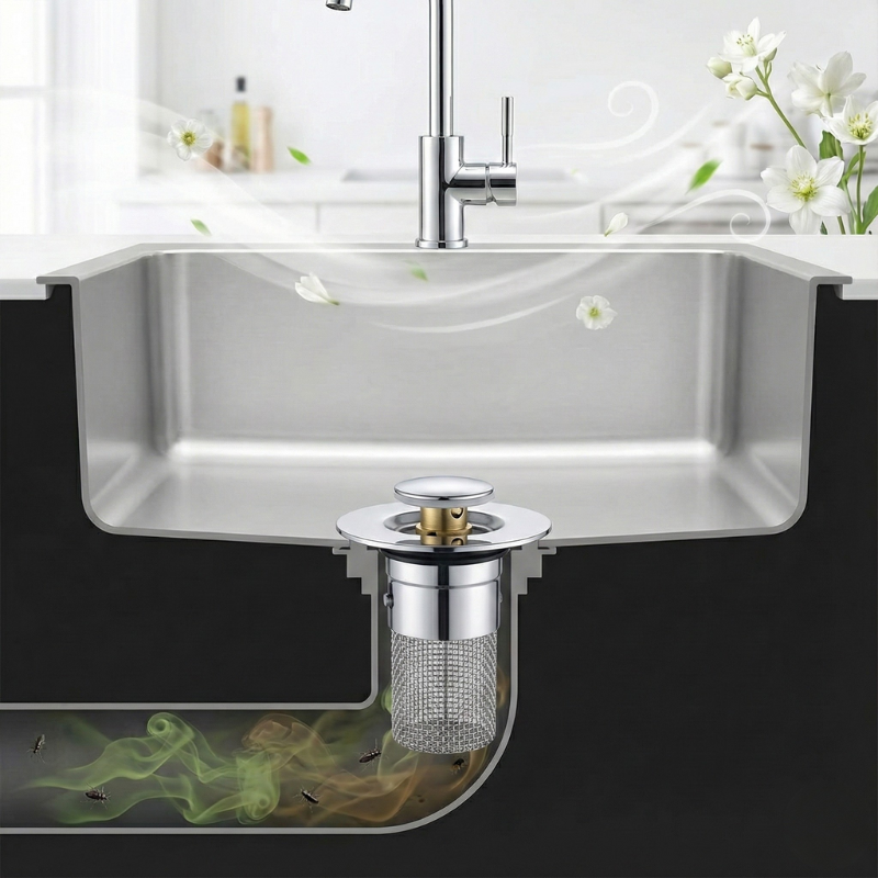 Son joint silicone étanche empêche les remontées d’odeurs d’égout et les petites nuisances du quotidien.